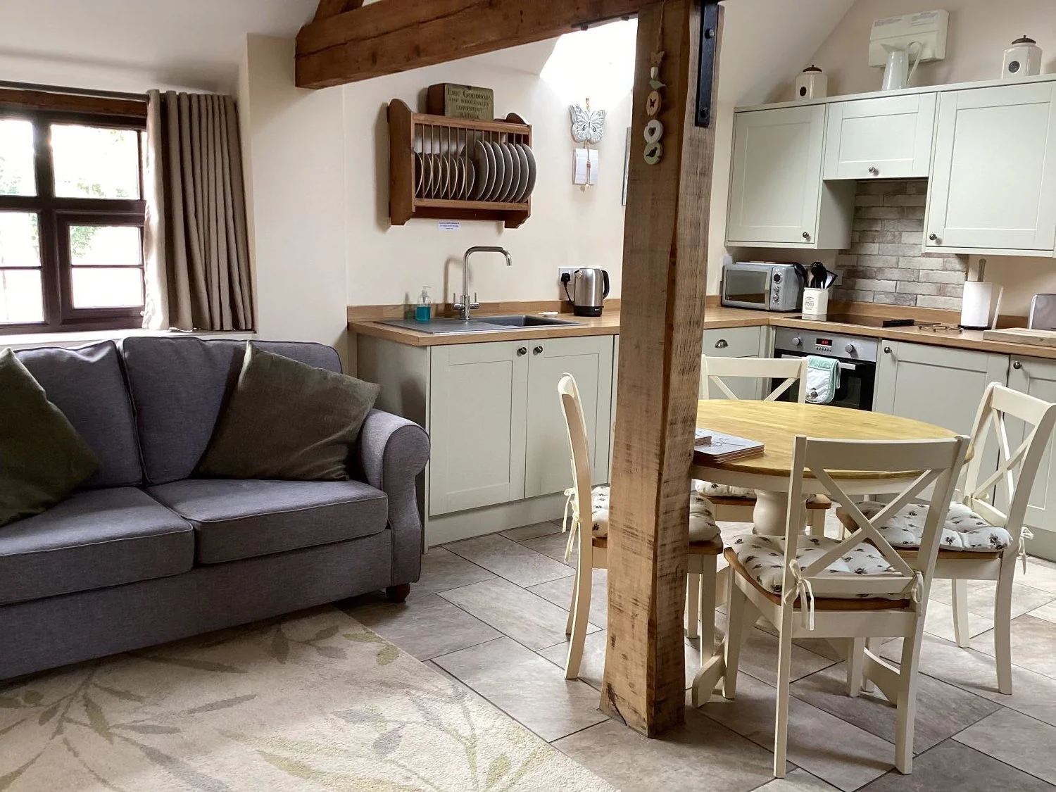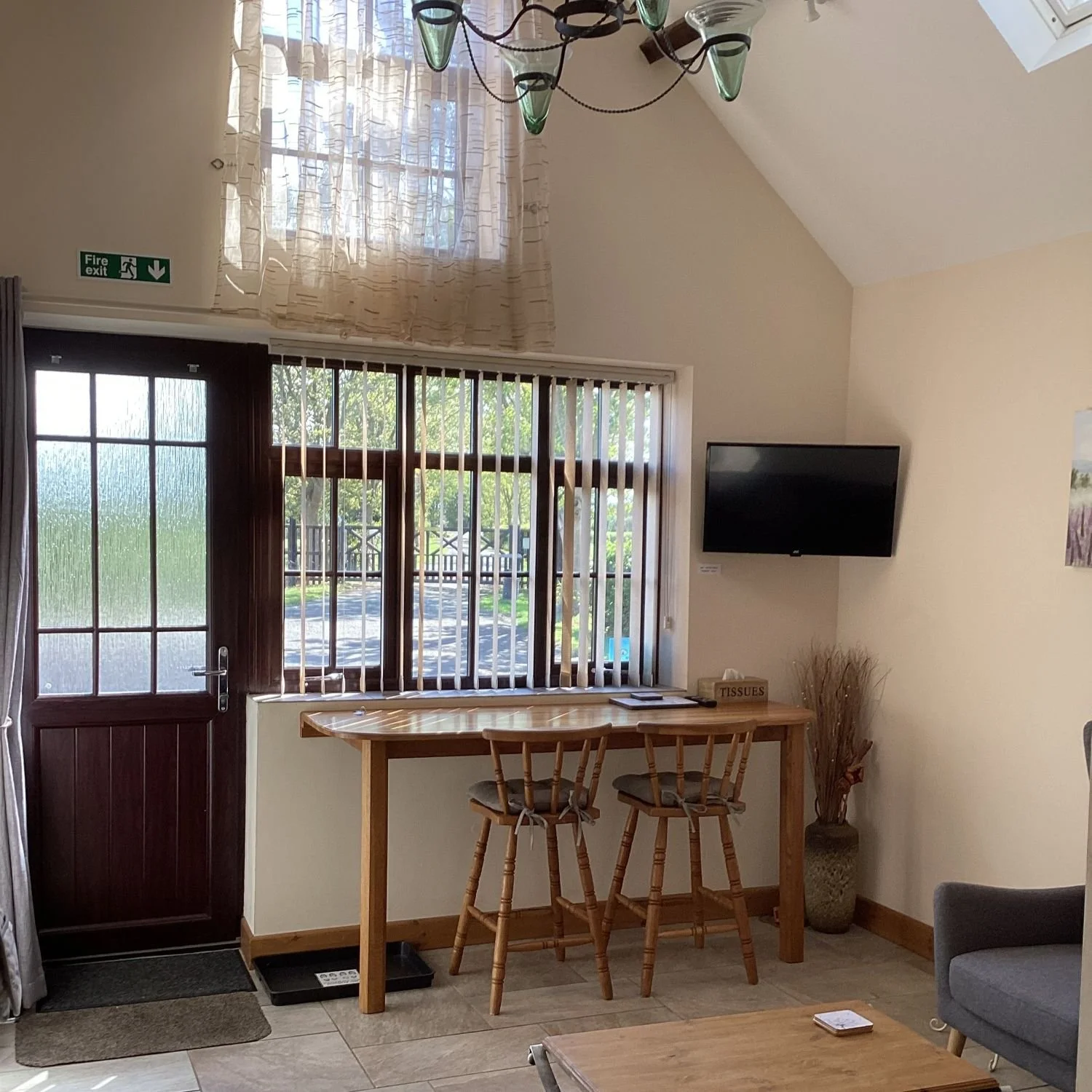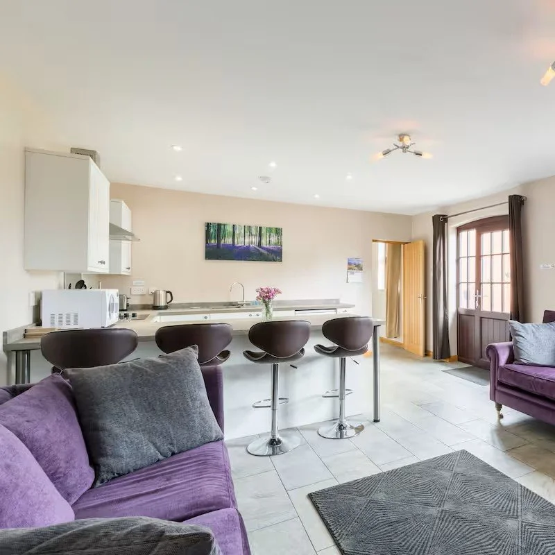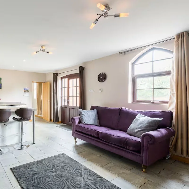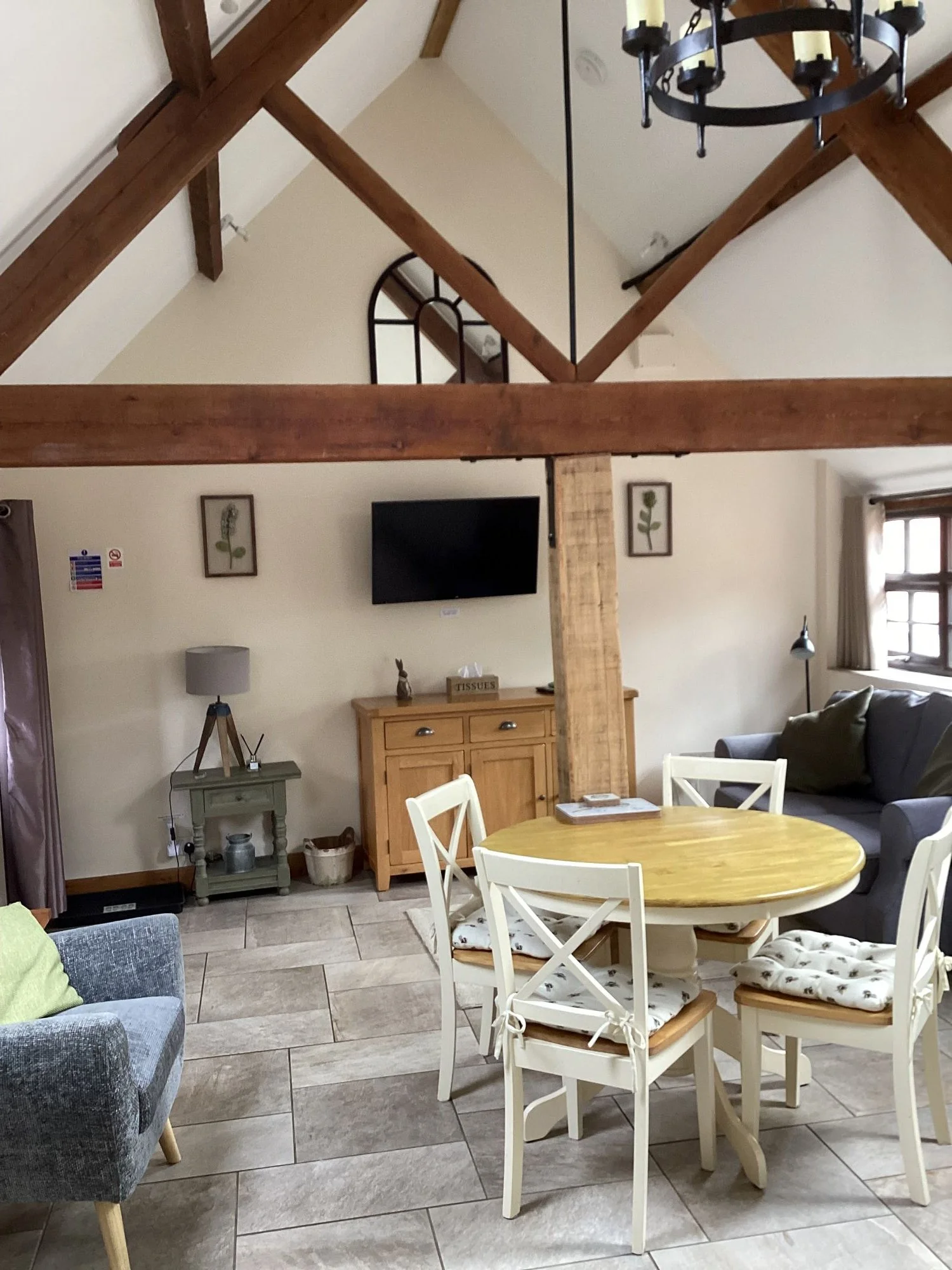 Set in its own private, fenced area, the hut enjoys fabulous countryside views over Napton on the Hill. Outside you’ll find a wood-fired hot tub, a gas pizza oven, and a patio with bistro seating — perfect for lazy afternoons or starlit evenings.