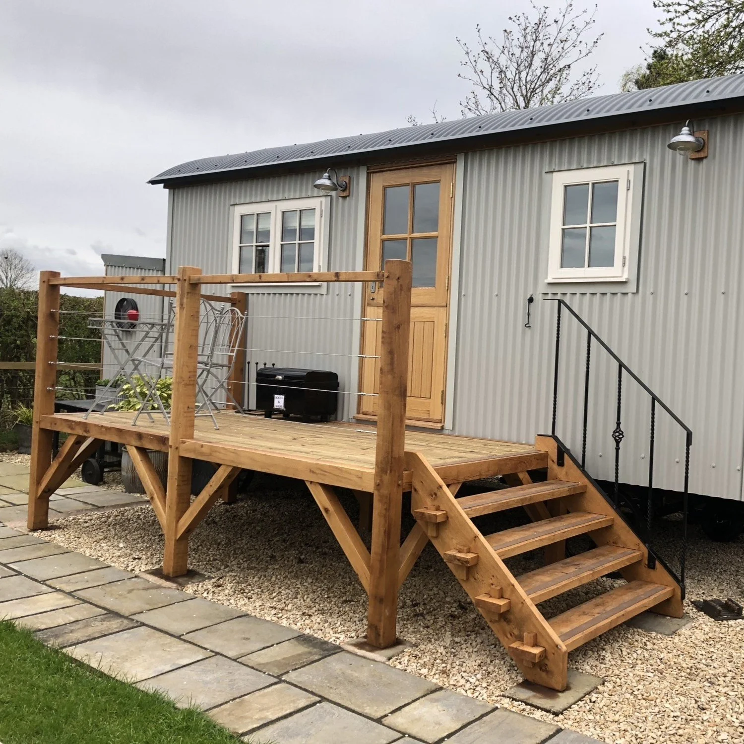 Inside, you’ll find a bright, open-plan living space with a fully equipped kitchen, dining table and chairs, and a comfortable lounge area. Underfloor heating and a ground-source heat pump ensure a cosy stay in every season. The spacious king-sized bedroom and separate shower room with walk-in shower make it an ideal retreat for two, with a sofa bed available for extra guests if needed.